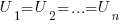 3) общее напряжение в цепи (U) равно сумме напряжений на её отдельных участках (U1, U2, … Un)