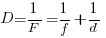 Оптическая сила линзы (D) — физическая величина, обратная фокусному расстоянию линзы (F), выраженному в метрах.