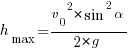 7) наибольшая дальность (lmax) полёта над горизонтальной поверхностью (при α=45°):