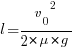 1) Путь (l), пройденный движущимся телом под действием силы трения до полной остановки (тормозной путь), прямо пропорционален квадрату начальной скорости (v0) и обратно пропорционален коэффициенту трения (μ):