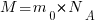 Молярная масса (M) вещества — это масса вещества, взятого в количестве одного моля и равная произведению массы молекулы (m0) на постоянную Авогадро (NA).