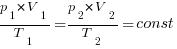 Для газа данной массы при переходе из одного состояния в другое при постоянном объёме (V) отношение давления (р) к абсолютной температуре (T) есть величина постоянная для всех газовых состояний.