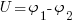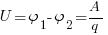 Напряжение (U) или разность потенциалов (φ1-φ2) между двумя точками равна отношению работы поля (А) при перемещении заряда из начальной точки в конечную к этому заряду (q).
