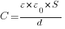 Электроёмкость плоского конденсатора (C) прямо пропорциональна площади пластин (S), диэлектрической проницаемости (ε) размещенного между ними диэлектрика, и обратно пропорциональна расстоянию между пластинами (d).