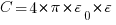 Электроёмкость шара радиусом R, помещенного в диэлектрическую среду с проницаемостью ε, равна: