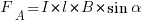 Сила Ампера (FА) — это сила, действующая на участок проводника с током в магнитном поле, равная произведению вектора магнитной индукции (В) на силу тока (I), длину участка (l) проводника и на синус угла (α) между магнитной индукции и участком проводника.
