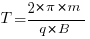 В однородном магнитном поле (В), направленном перпендикулярно к начальной скорости (v) частицы массой (m) с зарядом (q), сама частица равномерно движется по окружности радиусом (r) с период обращения (T).
