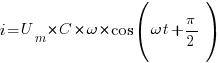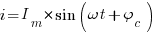 Колебания силы тока (i) в любой момент времени (t) в общем случае не совпадают с колебаниями напряжения на разность (сдвиг) фаз (φc) и определяются по формуле: