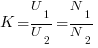 Коэффициентом трансформации (К) называют величину, численно равную отношению напряжений на первичной (U1) и вторичной (U2) обмотках трансформации, либо отношению числа витков на первичной (N1) и вторичной (N2) обмотках.