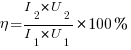 Коэффициент полезного действия (КПД) трансформатора равен отношению мощности тока во вторичной обмотке (Р2) к мощности тока в первичной обмотке (Р1).