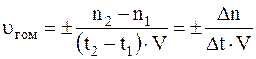 При этом под скоростью (υ) гомогенной реакции подразумевают изменение числа молей одного из веществ (конечного или начального) за единицу времени в единице объема системы: