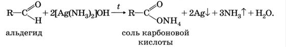 3. Взаимодействие альдегидов с аммиачным раствором оксидом серебра: