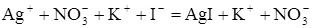 AgNO3 + KI = AgI + KNO3,
