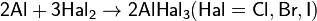 с галогенами (кроме фтора)[10], образуя хлорид, бромид или иодид алюминия: