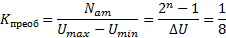 Накладывается пилообразная составляющая и делается ограничение. Характеризуется коэффициентом преобразования – отношение размаха входного напряжения к цифре максимальной: