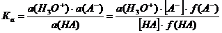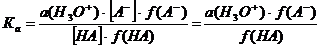 Таким образом, истинное значение рКа будет отличаться от экспериментального на величину логарифма отношения коэффициентов активности.