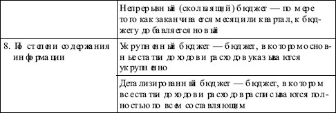 Таблица 11.2. Классификация бюджетов по основным классификационным признакам