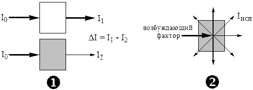 В абсорбционных спектроскопических методах через исследуемый образец пропускают электромагнитное излучение определённой длины волны. Если в данном образце имеются частицы, способные поглощать такое электромагнитное излучение, то интенсивность выходящего излучения будет меньше интенсивности излучения, попадающего на образец. Практически в абсорбционных методах анализа сравнивают интенсивность электромагнитного излучения, прошедшего через образец и не прошедшего через него (рис. 19.3).