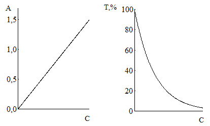 Оптическая плотность, в отличие от пропускания, связана с концентрацией прямо пропорциональной зависимостью (рис 20.2), поэтому она обычно и используется в абсорбционных спектроскопических методах анализа в качестве аналитического сигнала.