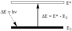 При поглощении атомом кванта электромагнитного излучения один из его электронов переходит на более высокий энергетический уровень - атом переходит из основного в возбуждённое состояние. Атом способен поглощать только такое электромагнитное излучение, энергия которого точно равна разности между энергией возбуждённого и основного состояния (рис. 20.5). Например, атом Na может поглощать электромагнитное излучение с длинами волн 589,0 нм (3s ® 3p), 330,23 нм (3s ® 4p), 285,28 нм (3s ® 5p) и некоторыми другими.