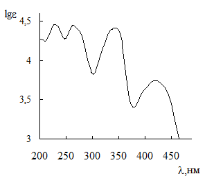 Рис. 20.10. Спектр поглощения берберина бисульфата (водный раствор)