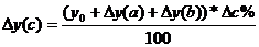 и известны значения показателей в базисный у0, а0, b0, с0 и отчетный у1, а1, b1, с1 периоды. Рассчитаем относительные изменения факторов в процентах.