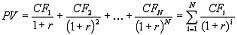 Дисконтирование является универсальной методикой приведения будущих денежных потоков к настоящему моменту, основанной на понятиях сложных процентов. Формула дисконтированной текущей стоимости денежных потоков выглядит следующим образом: