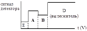 | Вытеснительная | Вначале в колонку вводят некоторое количество разделяемых веществ, которые распределяются в ней в порядке их сродства к неподвижной фазе. Затем в поток подвижной фазы вводят вещество-вытеснитель, которое имеет большее сродство к неподвижной фазе, чем любой из компонентов разделяемой смеси. Фронт вытеснителя движется по колонке, вытесняя ранее сорбированные вещества, которые, в свою очередь, вытесняют друг друга. Используется, в основном, для разделения макроколичеств веществ в препаративных целях. |