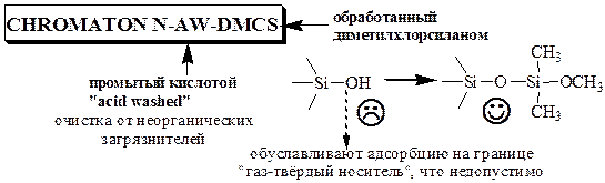 · не взаимодействовать с разделяемыми веществами, адсорбция веществ на поверхности раздела газ-твёрдый-носитель должна быть минимальной.