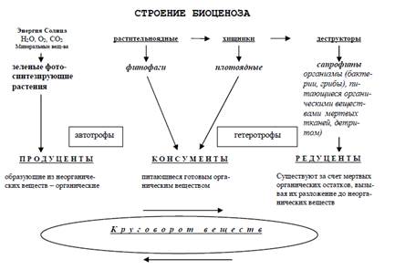 Трофическая структура биоценозов – совокупность устойчивых пищевых связей видов, образующих природные сообщества,или закономерные пищевые отношения между входящими в их состав организмами.