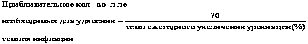 Следует отметить, что «правило величины 70» обычно применяется тогда, когда, например, надо установить, сколько потребуется времени, чтобы реальный ВНП или Ваши личные сбережения удвоились.