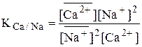 На практике для описания ионообменного равновесия вместо термодинамической константы используют аналогичную концентрационную константу, называемую коэффициентом селективности (KB/A), или смешанную константу, называемую исправленным коэффициентом селективности (