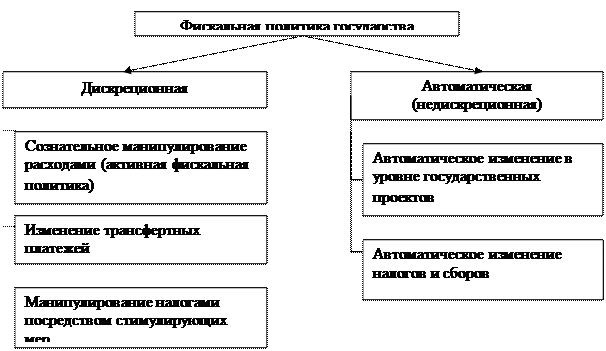 Различают дискреционный и автоматический типы фискальной политики.