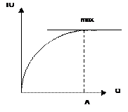 Функция полезности показывает убывание предельной полезности блага с ростом его количества: