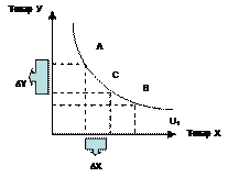 На кривой безразличия выделяется зона замещения (субституции). Это участок кривой безразличия, на которой возможна эффективная замена одного блага другим.