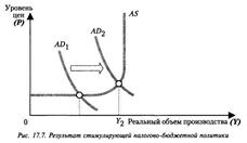 Графически результат стимулирующей налогово-бюджетной политики отображает известная модель «Совокупный спрос — совокупное предложение».