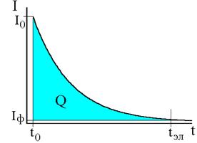 Рис. 26.5. Зависимость I от t в потенциостатической кулонометрии |