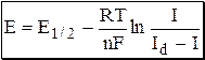 Полярографическая волна для обратимой электрохимической реакции описывается уравнением