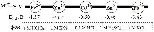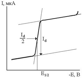 Потенциал, соответствующий половине высоты волны (потенциал полуволны) – E1/2, для каждого электроактивного вещества имеет свою величину (зависящую также и от природы фонового электролита) и поэтому может использоваться для его идентификации.