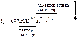 Id – диффузионный ток (мкА); n – число электронов, участвующих в электродной реакции; C – концентрация электроактивного вещества (ммоль/л); D – коэффициент диффузии вещества (см2/с); m – скорость вытекания ртути (мг/с); t – время жизни капли (с).