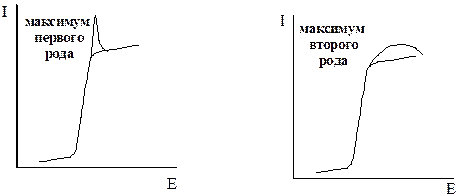 Иногда форма полярограммы может искажаться за счёт появления участков, сила тока на которых оказывается больше ожидаемой (появления «максимумов») – рис. 27.5.