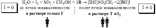 1 – электроактивно определяемое вещество, 2 – электроактивен титрант,