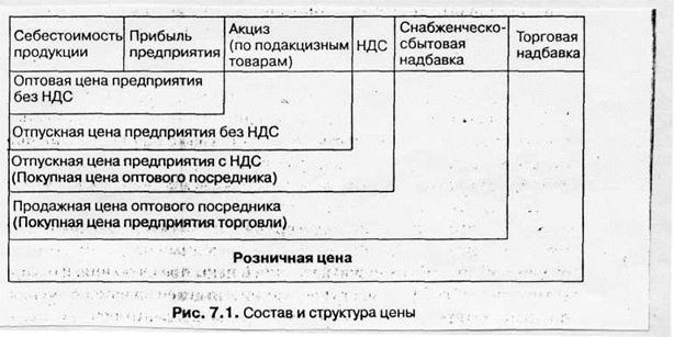 В состав цены включаются следующие виды налогов: социальные налоги. налог на добавленную стоимость (НДС), акциз и налог на прибыль.