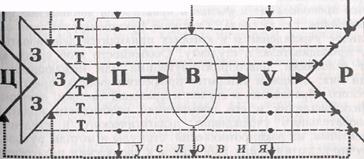 Первый блок. В основе любого управления, Целенаправленного создания и обеспечения функционирования педагогических систем лежит цель. Это цель существования и деятельности всего образовательного учреждения, частные цели его структурных единиц (факультетов, кафедр, отдельных учебных дисциплин и их целое, целей обучения на каждом курсе, при стажировках и пр.) целей и отдельных занятий. Цель — начальный и конечный пункт любого дела (рис. 5). Конечный результат должен полностью соответствовать намеченной изначально цели. Педагогические зависимости тут выражаются в способности всех организаторов профессионально-образовательного процесса мысленно предвидеть, спроектировать требующийся результат во всех необходимых деталях, сформулировать его в целях, всем понять их и свои конкретные цели, внутренне одобрить их и умело воплотить в педагогическом процессе, используя адекватное содержание, формы, методы, средства, условия, обеспечение и пр.