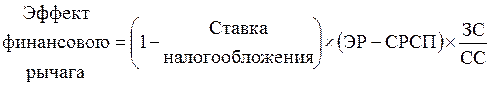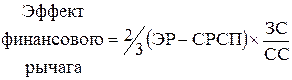 Предприятие, использующее кредит, увеличивает либо уменьшает рентабельность собственных средств, в зависимости от соотношения собственных и заемных средств в пассиве и от величины процентной ставки. Тогда и возникает эффект финансового рычага (ЭФР):