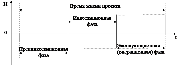 На Рис. 21 выделены три основные фазы развития инвестиционного проекта: