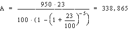 Уплата банку основного долга и процентов по кредиту осуществляется в виде аннуитета в конце каждого периода. Величина оплаты определяется по формуле: