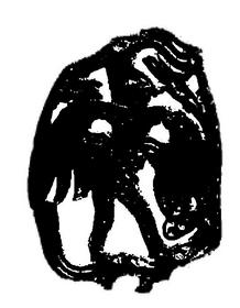 Еще одна сцена на мысу Пери нос (Онежское озеро) представляет собой то ли охоту с собакой на лося, где охотник изображен уже метнувшим болас, то ли расправу над каким-то животным, находящимся под ногами лося. Лаушкин полагал, что это могла быть лягушка — злое хтоническое существо, подменяющее, согласно саамским сказкам, человеческих детей своими детенышами, которых затем трудно было изгнать из человеческого мира (об этом еще будет рассказано в главе о саамской мифологии). Однако последние исследования показали, что по очертаниям зверь, на которого идет охота, напоминает скорее бобра, о хтоническом культе которого еще не раз будет повод поговорить. Для более поздней пластики Прикамья, о которой пойдет речь ниже, характерна фигура человека, стоящего на ящере между двух лосей. Подобное сочетание трех образов — человека, хтонического животного и лося — очевидно, должно было выражать соотношение трех миров.