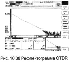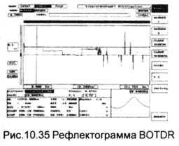 Принцип работы прибора в режиме ВОTDR поясняет рис. 10.31. Внешний вид прибора представлен на рис. 10.32. На рисунках 10.33 -10.35 представлены отображения на дисплее результатов измерений в режиме ВОТDR и на рисунке 10.36 в режиме СОTDR.