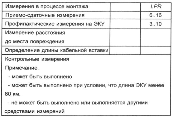 С одной стороны на КИП между металлическими покровами исследуемой длины кабеля и землей включается измерительный прибор. Первым этапом, соединив с противоположной стороны на КИП металлические покровы исследуемой длины кабеля с землей, выполняют измерение сопротивления. Вторым этапом, разрядив предварительно емкость «металлические покровы-земля», изолируют металлические покровы исследуемой длины кабеля от земли и снова выполняют измерение сопротивления. Если результаты измерений первого и второго этапов не совпадают, считают, что целостность металлических покровов на участке нарушена. Если результаты измерений на первом и втором то значение сопротивления, полученное при измерении на втором этапе, принимают за оценку сопротивления изоляции наружных покровов. Приводят данные измерений к единице длины линии и сопоставляя полученное в результате значение с нормами, делают вывод о состоянии изолирующих покровов оптического кабеля. Согласно [25] на ЭКУ сопротивление изоляции металлических покровов оптического кабеля относительно земли должно быть не менее 5 МОм.км. При этом, если данная норма не выдерживается и в результате проверки состояния кабеля и устранения повреждений довести сопротивление изоляции наружных покровов оптического кабеля до нормы не представляется возможным, то допускается приемка в эксплуатацию кабеля по фактически достигнутым величинам, но не менее 100 кОм.км. Соответственно, если по данным последних контрольных измерений нормы для исследуемого участка КИП-КИП выполнялись, то считают, что изоляция внешних покровов кабеля повреждена при сопротивлении изоляции ниже нормы. Если по данным последних контрольных измерений норма для исследуемого участка КИП-КИП не выполнялась, то считают, что изоляция внешних покровов кабеля повреждена при сопротивлении изоляции ниже 100 кОм.км.
